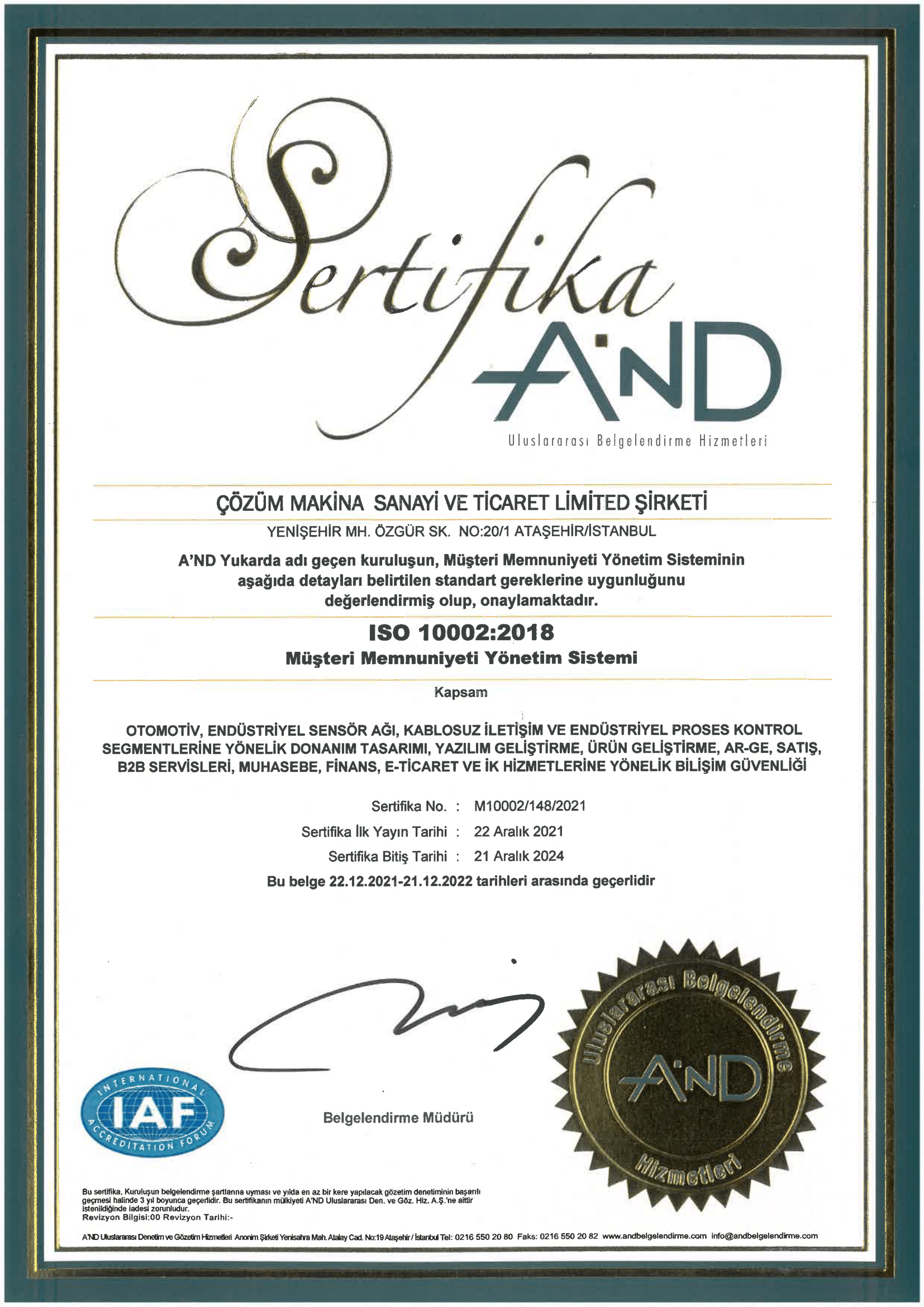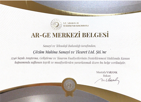 Accredited as an R&D Center by the Ministry of Industry and Technology of the Republic of Turkey