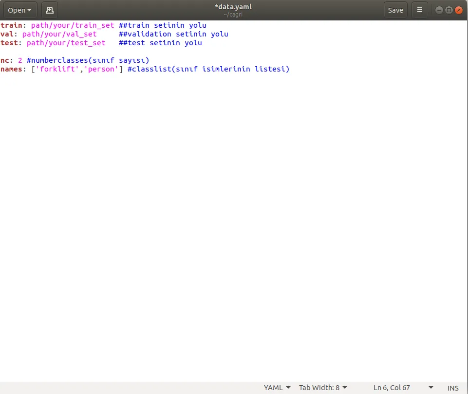 Model training varies depending on the algorithm being used. For YOLO, which is the most preferred due to its speed and performance, the training process proceeds as follows: After preparing the dataset, a YAML file (data.yaml) must be created, specifying the paths of the datasets, the number of classes, and class names.