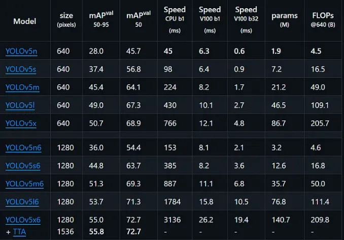 This means that for more complex and larger images, YOLOv5.6 models will yield better performance. Below is a comparison of YOLOv5 model specifications.
